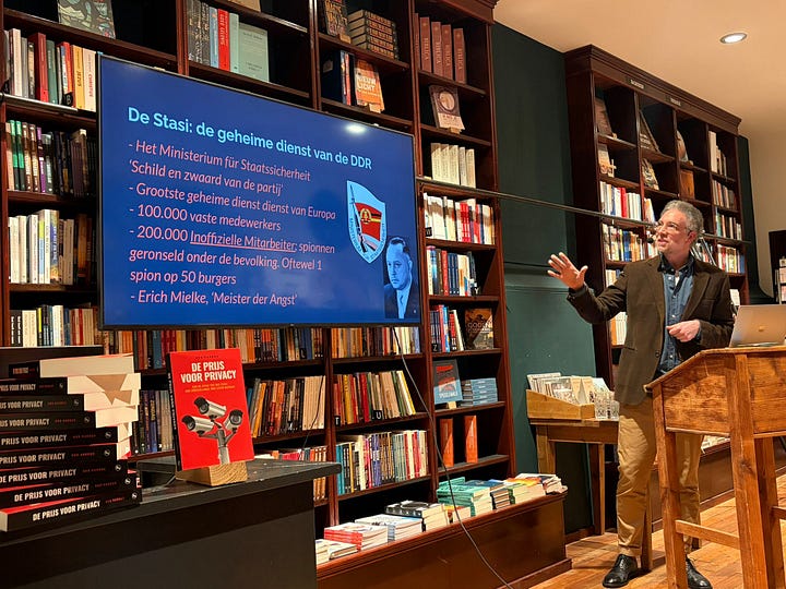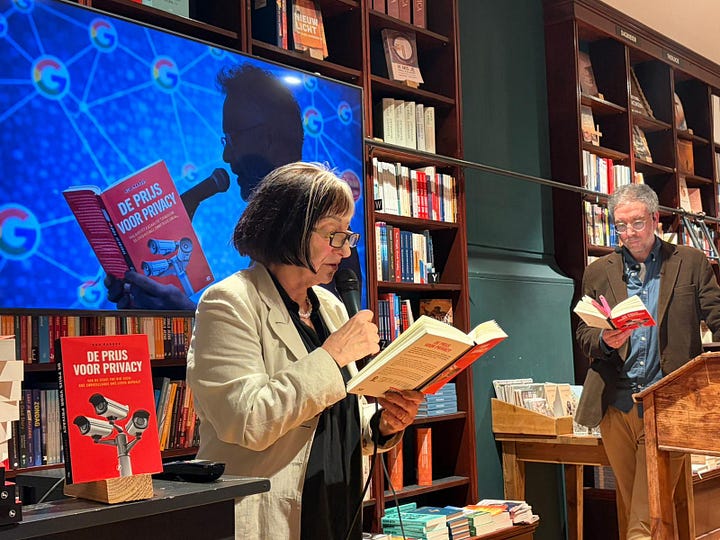 Tijdens de lezing kwam niet alleen aan bod wie ons volgt en hoe dat nu gebeurt, maar vooral ook de vraag: wat is privacy ons waard? Om onszelf te kunnen blijven, vrij te denken, te twijfelen en te leven zonder permanente registratie. En wat gebeurt er met een samenleving als die ruimte langzaam verdwijnt? De avond bleek – om met Ivo Niehe (en mijn uitgever) te spreken – “unaniem een groot succes”. Het was dan ook niet alleen serieus en leerzaam, er werd ook veel gelachen.
